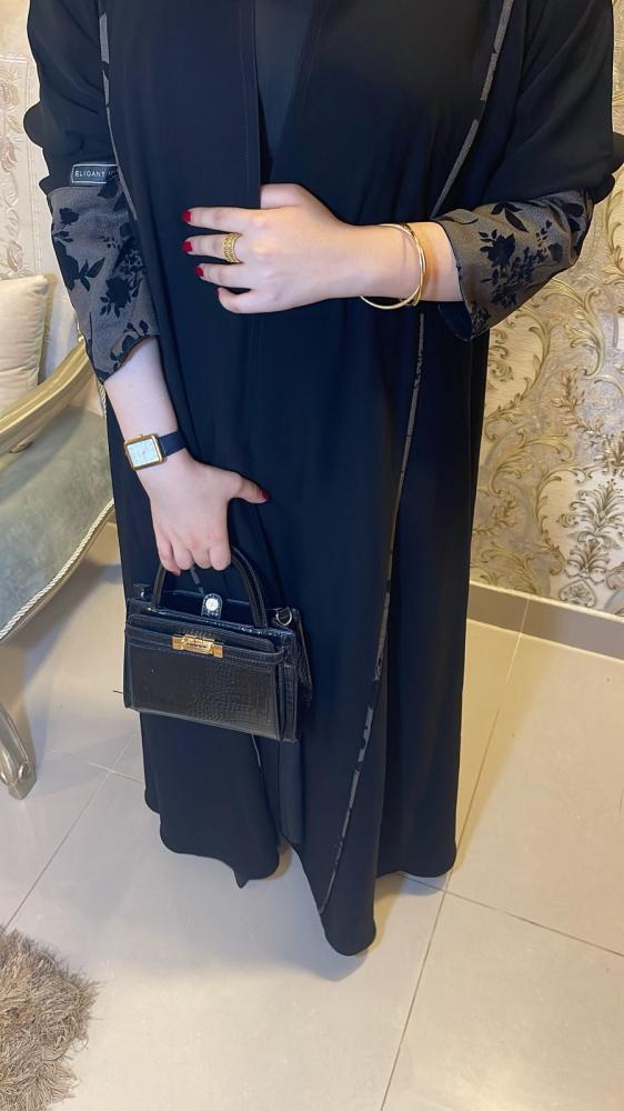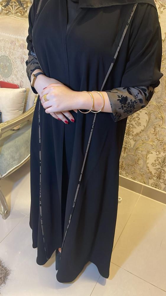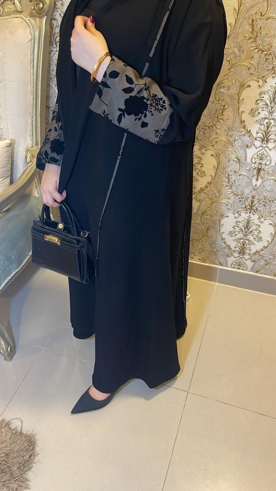 القماش / كريب ملكي كوري سواد فاحم + كتان مورد مخمل